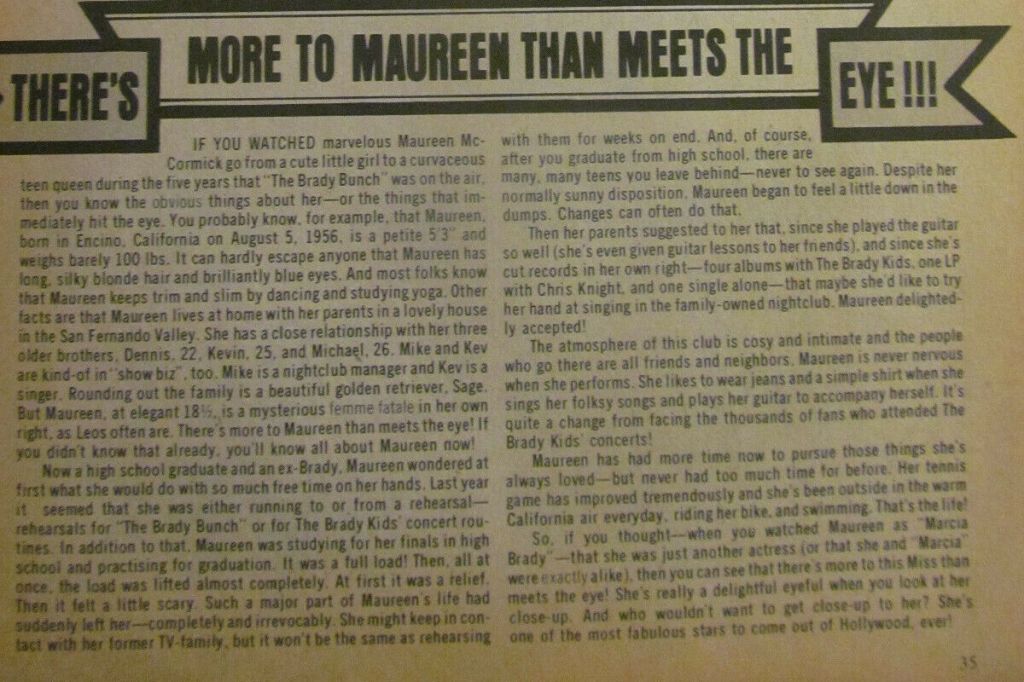 The Brady Bunch, Maureen McCormick 1970’s Full Page Magazine Clipping Posted byMarcia,Marcia,MarciaJanuary 17, 2020January 4, 2022Posted inMarcia Brady, maureen mccormickTags:Gallery There’s More To Maureen Than Meets the Eye Share this:TweetLike Loading... Related Pages: 1 2 3 Published by Marcia,Marcia,Marcia Fans Of Maureen McCormick Blog & All things Maureen McCormick related View more posts